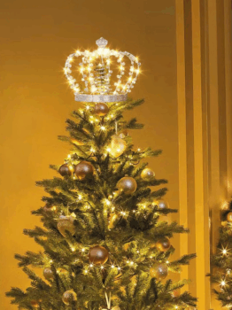 A crown topper adds elegance and drama. Choose gold wire crowns, jeweled tiaras, or metallic designs to make your tree look royal and unique. This topper is especially stunning with rich themes like gold, emerald, deep red, or white luxury décor.