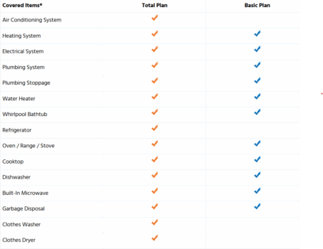 - Basic Plan: Covers heating, electrical, plumbing, water heaters and most kitchen appliances, including ovens, ranges, stoves, cooktops, dishwashers, built-in microwaves and garbage disposals. It also covers garage door openers and ceiling and exhaust fans.